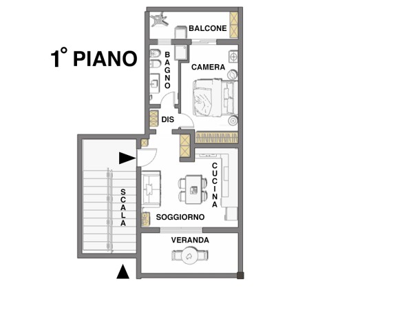 camera matrimoniale con accesso al balcone, e da un bagno funzionale e ben